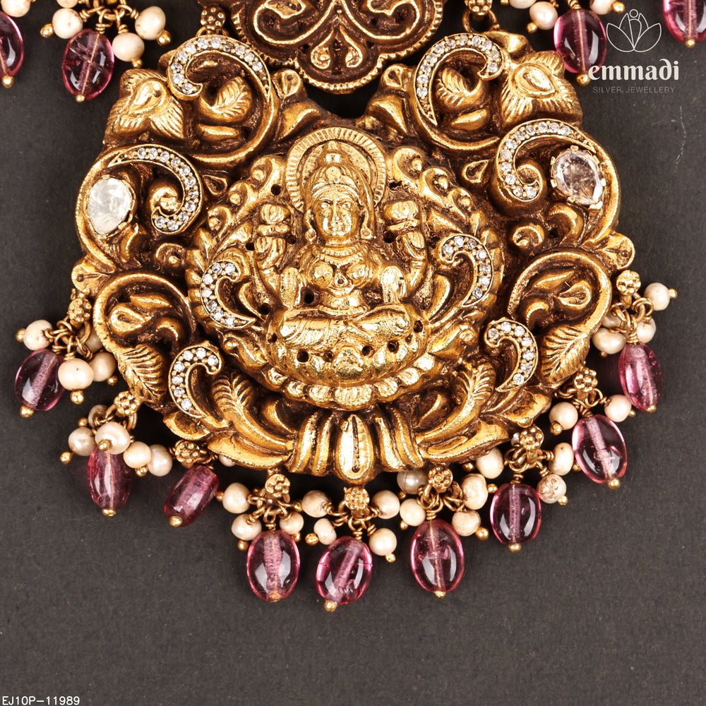 The Nakshi Collection is a tribute to timeless temple jewellery, featuring silver pieces adorned with mythological motifs and intricate carvings. Designed for devotees of tradition, these stunning creations embody the rich cultural heritage of South India.