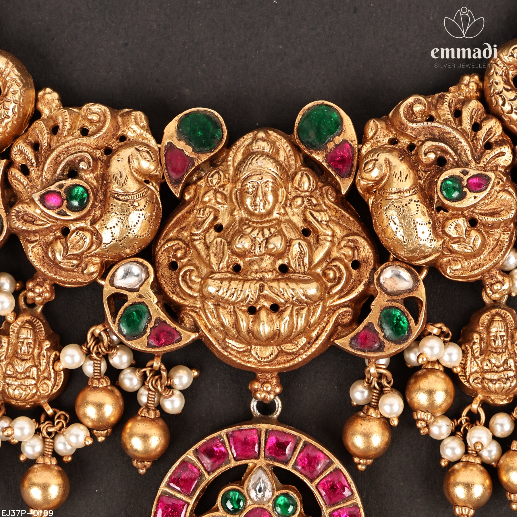The Nakshi Collection is a tribute to timeless temple jewellery, featuring silver pieces adorned with mythological motifs and intricate carvings. Designed for devotees of tradition, these stunning creations embody the rich cultural heritage of South India.